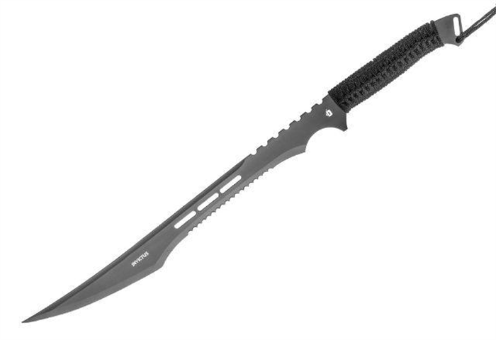 A faca Lancer II compõe o portfólio de facas para uso outdoor INVICTUS. É uma faca de 48 cm de comprimento, com lâmina em aço inoxidável 420 Full Tang, toda preta. Sua bainha é feita em nylon 300 D com alça. Um equipamento imponente e arrojado