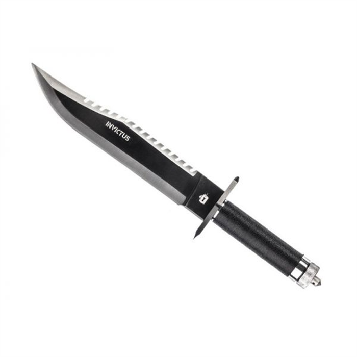 A faca Titan compõe o portfólio de facas para uso outdoor INVICTUS. É uma faca versátil, com características fundamentais para situações de sobrevivência. Possui lâmina em aço inoxidável 420, bainha em couro sintético, pomo metálico (quebra vidro), orifício para fiel, chave de fenda e chave Philips, kit de sobrevivência e bússola.