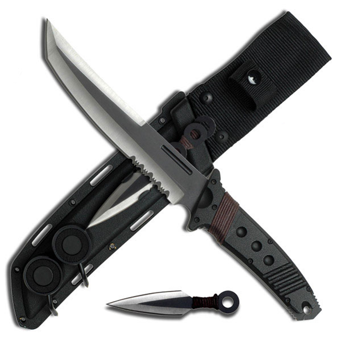 Kit Ninja com: Faca tanto serrilhada, 3 kunais e 2 ganchos multi uso.