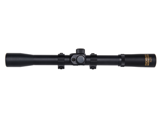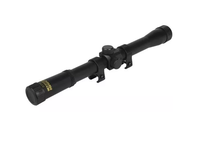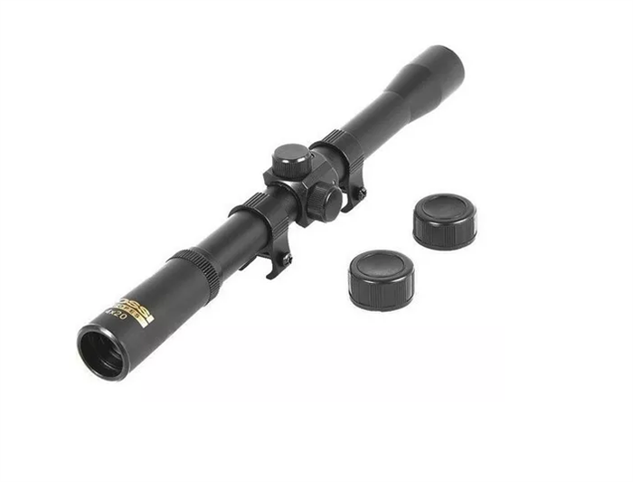 Luneta de aumento fixo de 4 vezes; Lente objetiva de 20 mm de diâmetro; Regulagem vertical e horizontal; Suporte para fixação. Ideal para uma melhor precisão nos tiros.