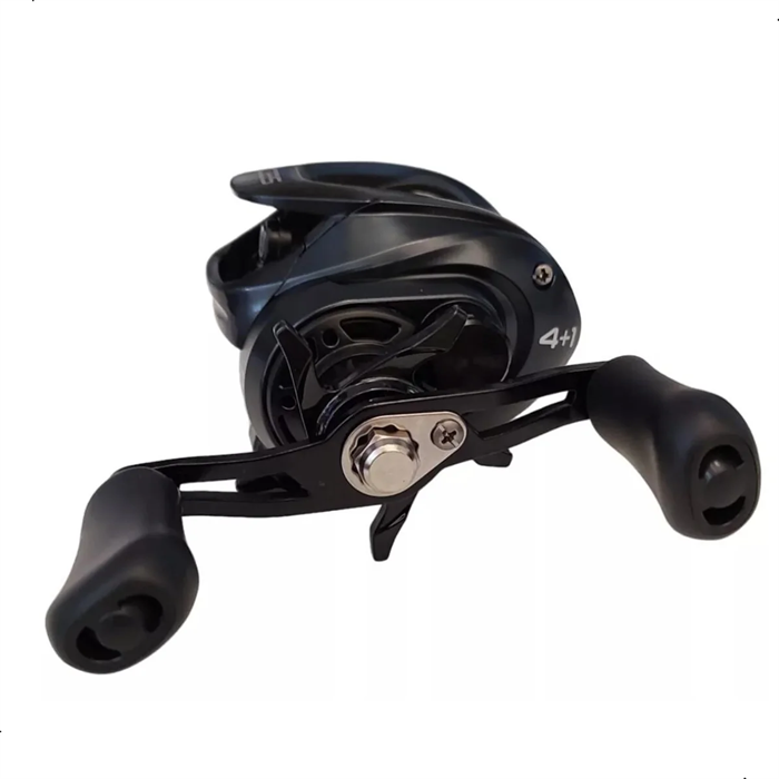 A manivela em alumínio, complementa o design elegante e funcional. Seu carretel também é em alumínio, que garante mais resistência.