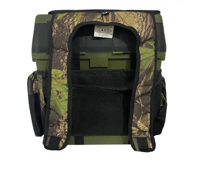 A Fishing Box é impermeável e conta com forro acolchoado para que também possa ser utilizada como banco em todos os momentos necessários, ela também possui bolsos para estojos para a organização das iscas, porta documentos.