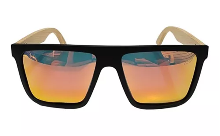 Óculos Polarizado Haste Madeira Lente Espelhada Vermelha