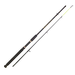 Vara de fibra de vidro em duas partes, com cabo em EVA e passadores de Porcelana, indicada para pescaria média, disponível nas versões para carretilha ou molinete.