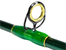 A Vara SAINT TAMBAQUI: Composta por Blank (haste) em fibra de vidro maciça, passadores óxido de alumínio gold e cabo de EVA na cor verde.