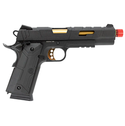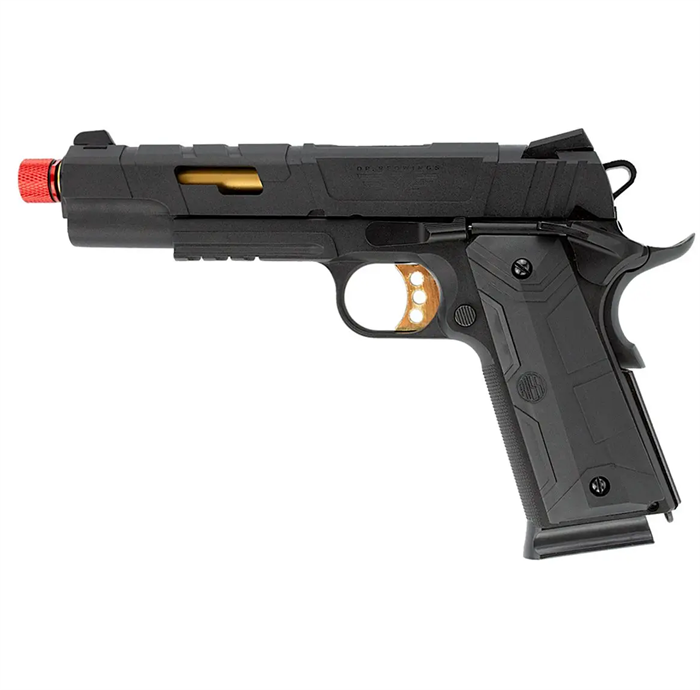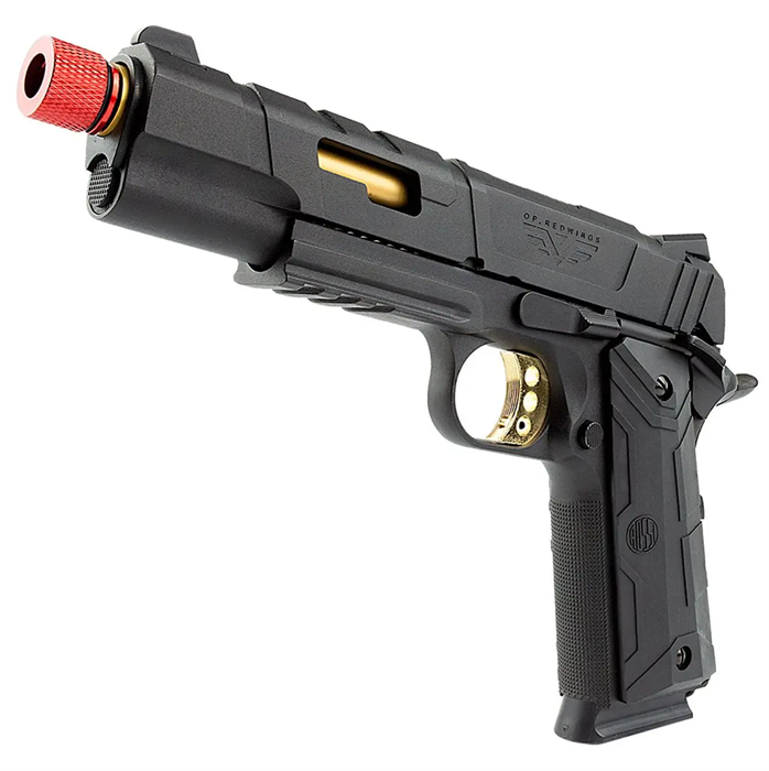 O design moderno e agressivo da pistola RedWings é um verdadeiro show á parte. O contraste das cores e formatos dessa 1911 são um grande diferencial frente a outras pistolas GBB.
