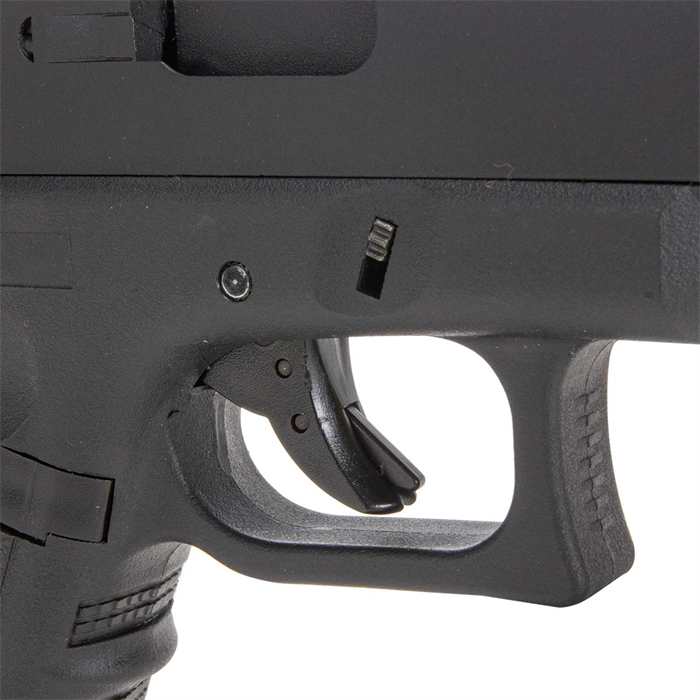 Gatilho com sistema de segurança Safe Action, tornando está pistola fiel ao projeto original e garantindo o máximo de segurança ao usuário.