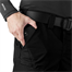 - Bolsos laterais deslocados para cima e levemente inclinados para facilitar o acesso, mesmo com de arma empunhada.