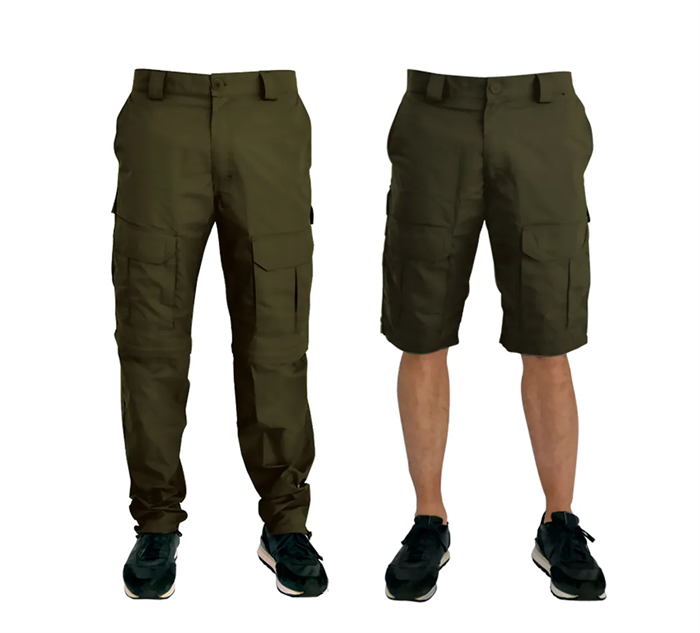 Com 8 bolsos distribuídos estrategicamente de maneira a facilitar e acomodar objetos com segurança e sem causar incômodos ao usuário, possui também um elástico de ajuste na cintura, além de também ser possível sacar a parte de baixo transformando-a em bermuda em poucos segundos.