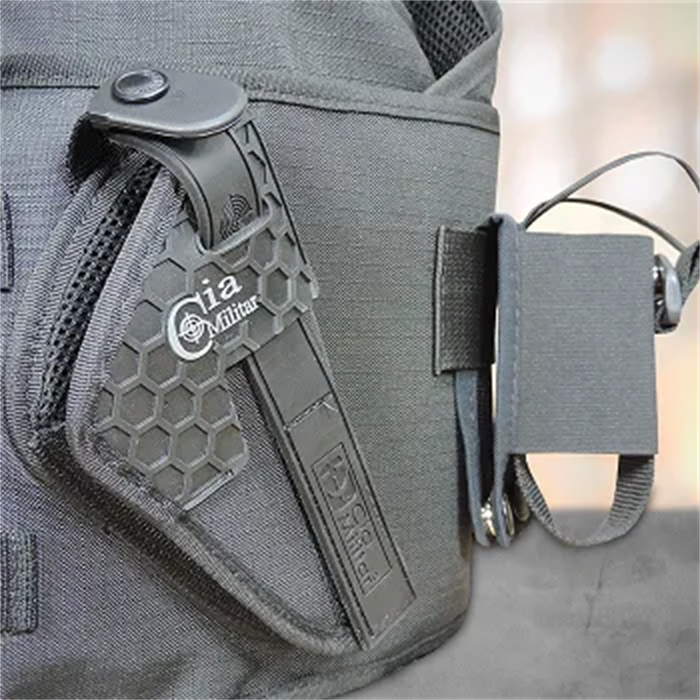 Ajuste-se confortavelmente ao corpo, dá segurança, firmeza, acomoda bem a arma ao coldre e facilita saque rápido em operações táticas. Seu revestimento interno em tecido aerado MESH AIR acolchoado com espuma de polietileno expandido proporciona mais conforto, ventilação e evita a formação de fungos. O sistema Soft Impact – SI minimiza o impacto produzido pela arma na hora do disparo.