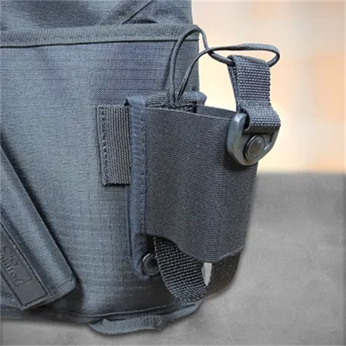 - Porta bolsa de hidratação (CamelBak) ou objetos com fechamento em velcro