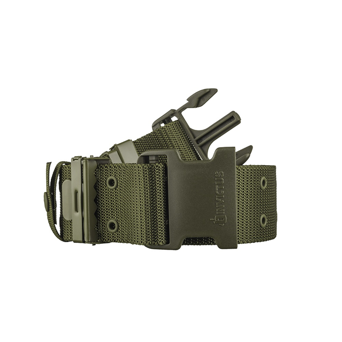 Os cintos INVICTUS NA foram desenvolvidos para operadores que necessitam carregar mais equipamentos. Sua fita feita em nylon tem 5,5 cm de largura e não necessita de passadores na calça ou bermuda. Além disso, possui ilhoses e espaçadores metálicos na cor do cinto, e fivela não metálica reforçada, com fechamento de engate. Disponível nas cores preto e verde.