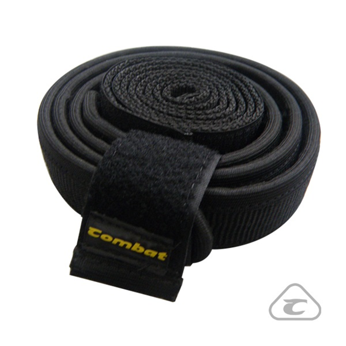 Cinto para tiro prático com faixa de velcro sobreposta. Composto de material sintético resistente.