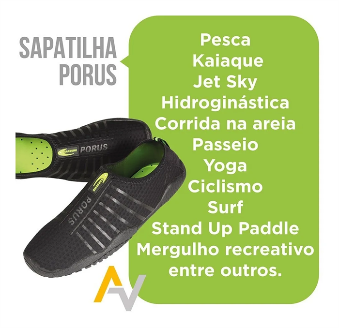 Tênis esportivo Porus na cor Grafite para Pesca, Kaiaque, Jet Sky, Hidroginástica, Corrida na areia, Passeio, Yoga, Ciclismo, Surf, Stand Up Paddle, Treinamento Funcional, Mergulho recreativo entre outros. Liberdade de movimento e seca rápido