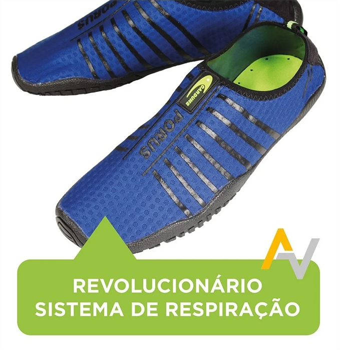 Tênis esportivo Porus na cor Grafite para Pesca, Kaiaque, Jet Sky, Hidroginástica, Corrida na areia, Passeio, Yoga, Ciclismo, Surf, Stand Up Paddle, Treinamento Funcional, Mergulho recreativo entre outros. Liberdade de movimento e seca rápido