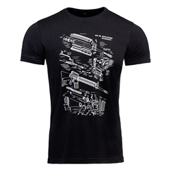Desmontamos um clássico bélico, o fuzil AR15. e o estampamos num diagrama em camisetas nas cores preta e branca. Agora os amantes de armas poderão circular por aí tranquilamente com a artilharia pesada no corpo, esbanjando lifestyle.