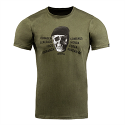 Tradição nas linhas de camisetas conceito INVICTUS, a caveira não    poderia ficar de fora da nova coleção. Nesta roupagem a caveira, símbolo de igualdade da raça humana, aparece trajando uma respeitosa boina negra. Ao seu redor palavras que encorajam e que forjam a postura de um verdadeiro líder. Conduza o seu caminho, vista a invencibilidade, seja um líder.